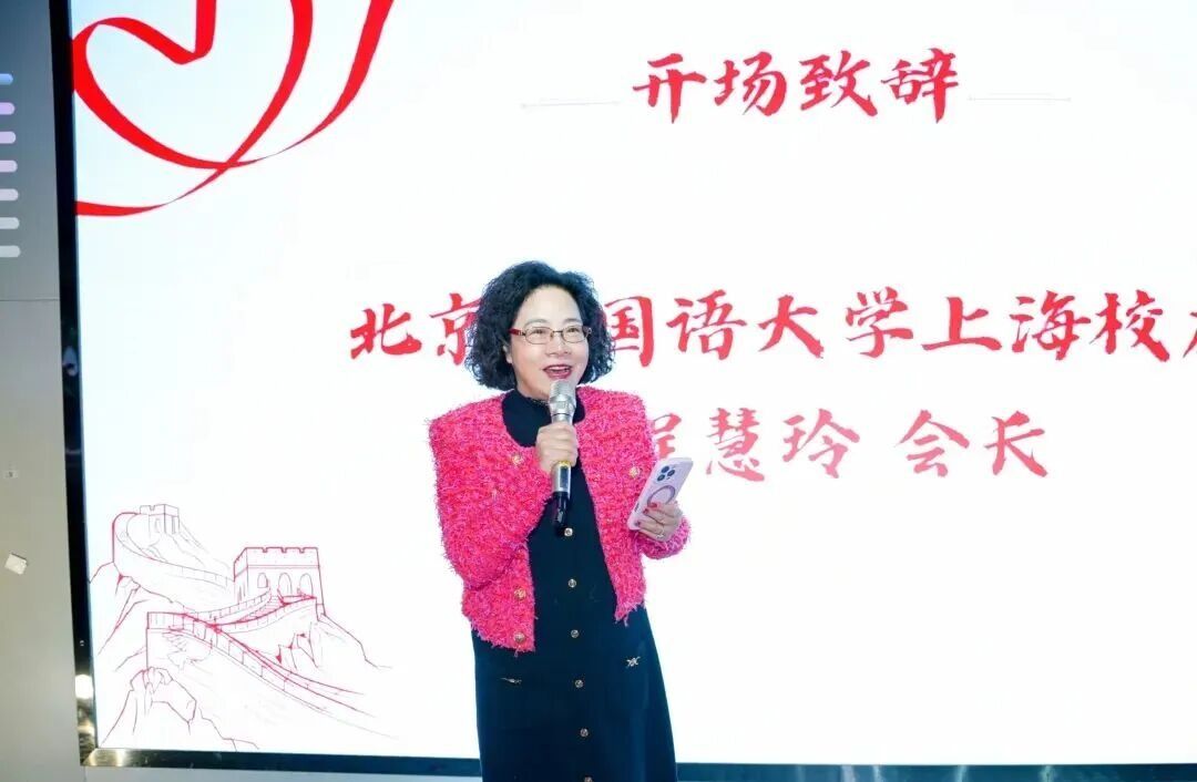 下午两点,年会正式拉开序幕。北外上海校友会会长程慧玲以“青春不打烊”为主题,欢迎每一位校友回家。程会长特别提到了海报上“小马冲浪、躺平撒欢”的意象,笑言“马年就要活力满满,也要自在松弛”,精准道出了当下校友们追求工作与生活平衡的心声。她强调,无论毕业多久,北外人始终带着母校赋予的语言优势与国际视野,在上海这座城市彼此照亮、共同成长。
